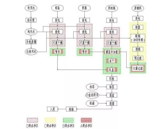 圖 1 工藝流程框圖以及潔凈區(qū)域劃分圖